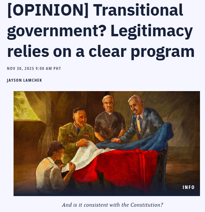 Law professor Tony La Viña proposes a ‘hybrid’ transitional government that respects the Constitution while allowing for necessary reforms, contingent on the resignation or removal of current leaders.
